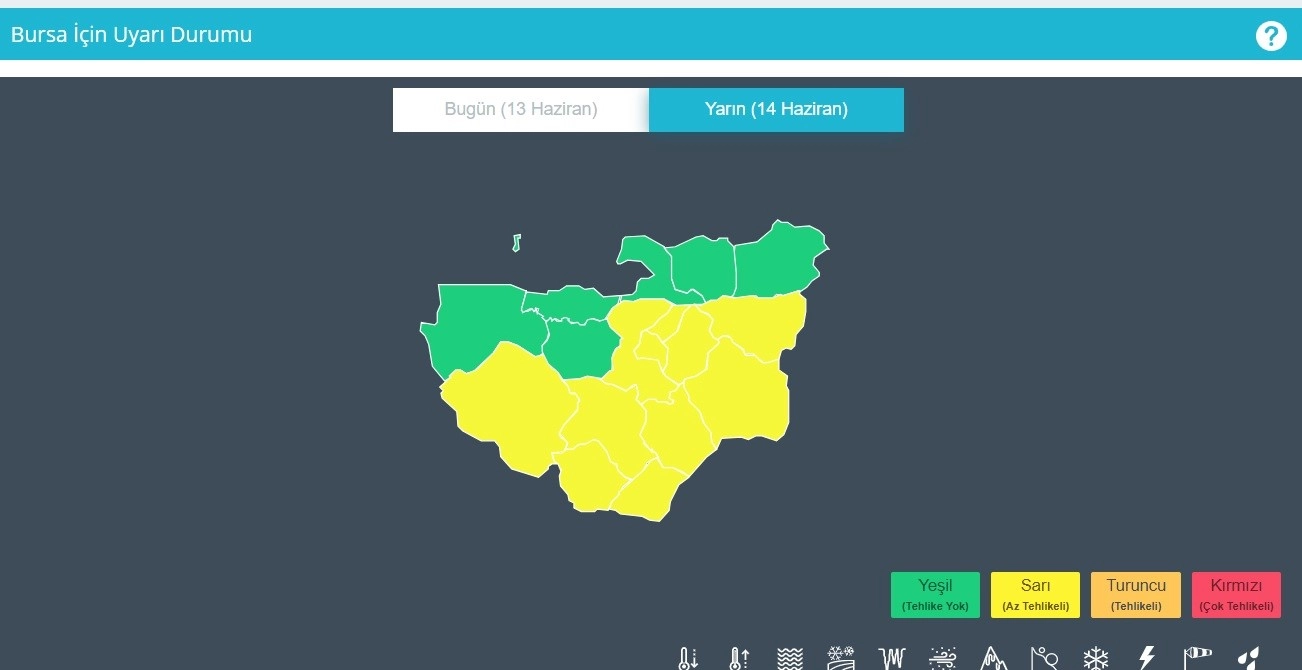 Meteoroloji Genel Müdürlüğü Bursa için sarı uyarıda bulundu.