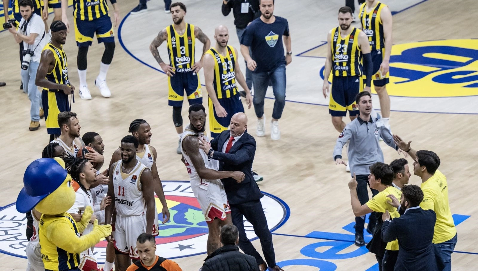 THY Euroleague çeyrek final 4. maçında Fenerbahçe Beko alanında Monaco'ya 65-62 kaybetti.Maçın bitiş düdüğüyle saha içindeki Fenerbahçe Beko taraftarları ve Monaco oyuncuları ortasında gerginlik yaşandı.