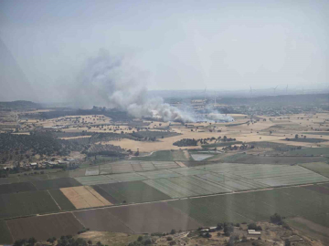 Çanakkale’nin Ezine ilçesinde tarım arazisinde başlayan yangın, Çanakkale Orman Bölge Müdürlüğü ekiplerinin havadan ve karadan müdahalesiyle kontrol altına alındı.