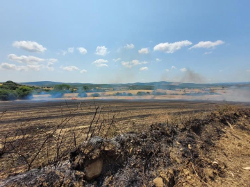 Çanakkale’nin Biga ilçesinde tarım arazisinde başlayan yangına ekipler havadan karadan müdahale ediyor.