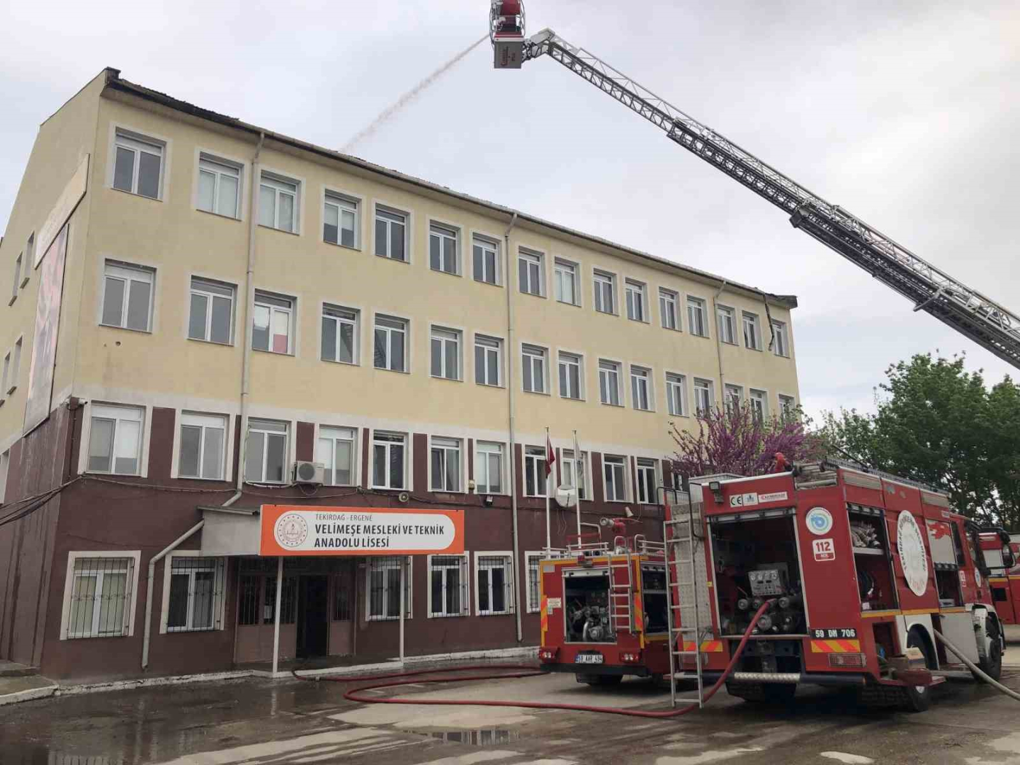 Tekirdağ’ın Ergene ilçesinde Velimeşe Mesleki ve Teknik Anadolu Lisesi binasının çatısında yangın çıktı.