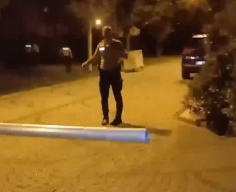 İstanbul Esenyurt’ta bulunan bir parkta, ellerindeki tornavida ile banklara zarar veren iki genç, bekçiler tarafından durduruldu. Bekçilerin GBT sorgulaması yaptığı gençlerden birisi gözaltına alındı, diğeri ise o anları videoya çekerek kaçtı. Kaçan şüpheliyi yakalamaya çalışan bekçiler, havaya ateş açtı.
