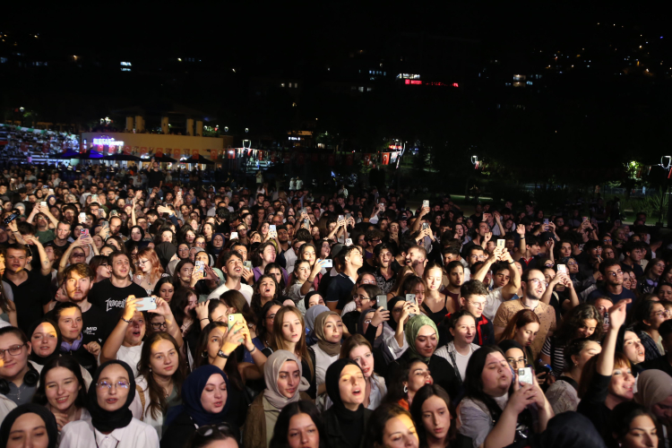 Konuşmaların ardından sevilen grup Pinhani, şarkılarını binlerce Bursalı ile birlikte ‘barış’ için söyledi.