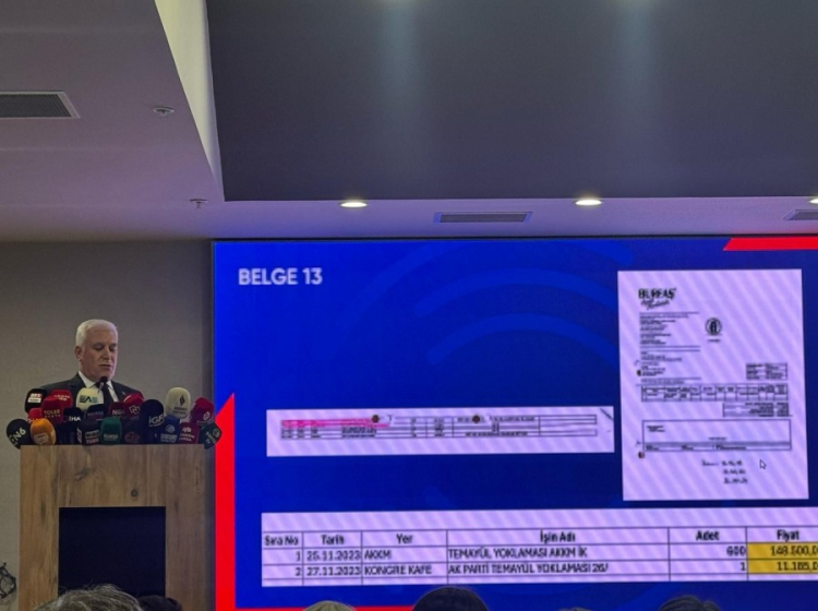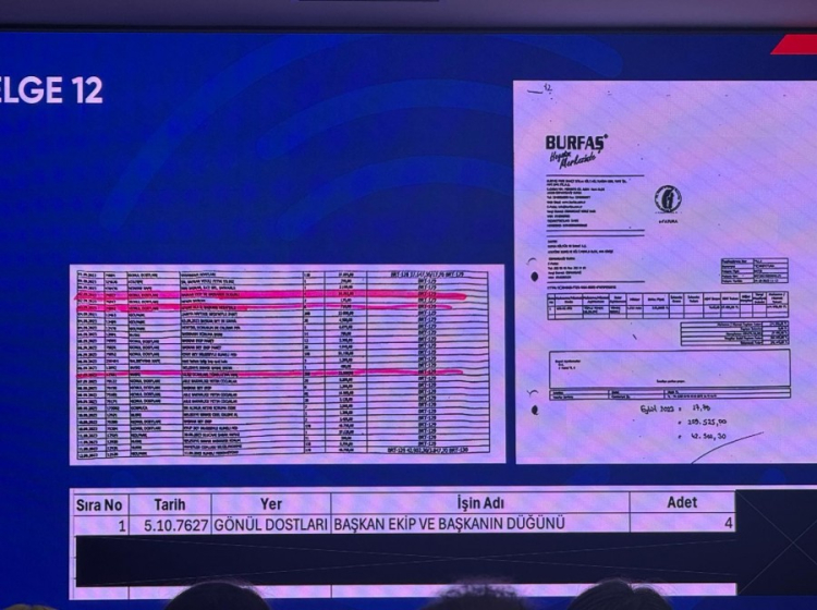 Başkan Bozbey, geçmiş dönemde yapılan harcamalarla ilgili belgeleri basın mensuplarına göstererek, belediye kaynaklarının parti çalışmalarına aktırıldığını belirtti: