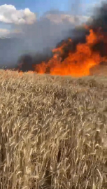 Bursa’da buğday tarlası alev alev yandı