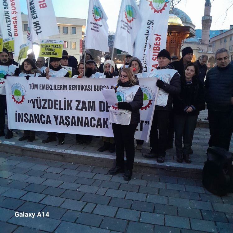 Bursa’daki açıklamada, emeklilere yapılması öngörülen zam oranları da eleştirildi. Ocak 2026’da işçi ve Bağ-Kur emeklileri için yüzde 12–13, memur emeklileri için ise yüzde 18 civarında artış beklendiği hatırlatılarak, bu oranların emeklilerin yaşam koşullarını iyileştirmeye yetmeyeceği dile getirildi.