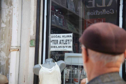 Meteoroloji Genel Müdürlüğü verilerine göre, yurt genelinde hava sıcaklıklarının hafta içinde yükseleceğini duyurması üzerine sıcaktan bunalmak istemeyen vatandaşlar çözüm yolu arıyor. Bursa’da yıllardır yün iç çamaşırı satışı yapan esnaf Naci Bağcı ise baharın gelmesini fırsat bilerek dükkanının camına bir afiş astı. Daha öncesinde ’Doğalgazı düşüren donlar burada’ afişi ile görenleri şaşırtan Bağcı, bu sefer de ’Doğal klima ter atleti gelmiştir’ yazarak görenleri gülümsetti.