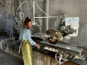 Bursa’nın İznik ilçesinde, eşiyle birlikte mermer atölyesi işleten 42 yaşındaki Hazel Kara, hem annelik görevini yerine getiriyor, hem de erkeklerin hâkim olduğu bir sektörde büyük bir başarıya imza atıyor