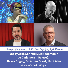 31’inci İstanbul Caz Festivali kapsamında düzenlenecek Garanti BBVA Caz Sohbetleri Yapay Zekâ Sonrası Müzik Yapmanın ve Dinlemenin Geleceği: Beyza Doğuç, Ercüment Orkut, Ümit Alan söyleşisiyle devam ediyor. 15 Mayıs Çarşamba günü saat 18.30’da Salt Beyoğlu Açık Sinema’da gerçekleşecek söyleşide yazar Yekta Kopan moderatörlüğünde müzisyen Beyza Doğuç, piyanist ve besteci Ercüment Orkut ve yazar Ümit Alan ile yapay zekâ sonrası müzik üretimi ve dinleme alışkanlıkları üzerine bir sohbet gerçekleştirilecek.