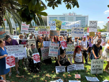Adalar’da hizmete alınan ve ada sakinlerinin ‘azmanbüs’ olarak adlandırdığı elektrikli minibüsün bölgeye zarar verdiğini savunan bir grup, geçtiğimiz günlerde adliyeye giderek İBB Başkanı Ekrem İmamoğlu ve İETT Genel Müdürü İrfan Demet hakkında suç duyurusunda bulunmuştu. Bir grup Adalar sakini bugün ise Saraçhane’ye gelerek İBB Başkanı Ekrem İmamoğlu’nu protesto edip eylem yaptı. Ellerinde çeşitli pankartlar bulunan grup, zaman zaman slogan atarak azmanbüslerin kaldırılmasını istediklerin belirtti. Basın açıklaması yapan grup üyeleri dünya mirası olan Adalar’ın korunmasının öncelikli olduğunu savundu. Azmanbüsler ile ilgili endişelerini dile getiren vatandaşlar Adalar’ın şehirleşmesine yol açacağını söyledi.