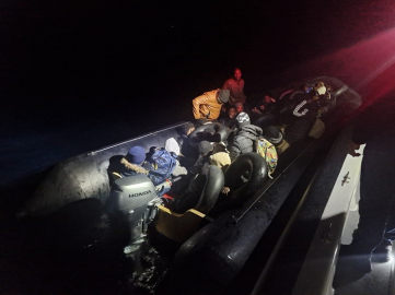Edinilen bilgiye göre, Ayvalık’ta görev yapan Sahil Güvenlik Mobil Radarı (MORAD-12) tarafından Ege Denizi’nin Ayvalık açıklarında lastik bot içerisinde bir grup düzensiz göçmen olduğu tespit edildi. Hemen harekete geçen KB-115 isimli Sahil Güvenlik Botu, Midilli Adası’na doğru ilerlemekte olan lastik botu durdurarak içindeki 2’si çocuk 35 düzensiz göçmeni yakaladı. Cunda Adası’ndaki Sahil Güvenlik Komutanlığı’na getirilen 35 göçmene yiyecek, giyecek, ilaç ve tıbbi malzeme gibi insani yardımlarda bulundu. Aralarında kadınların da bulunduğu 35 düzensiz göçmen, haklarında yapılan yasal işlemlerin ardından Balıkesir İl Göç İdaresi Merkezi yetkililerine teslim edildi.