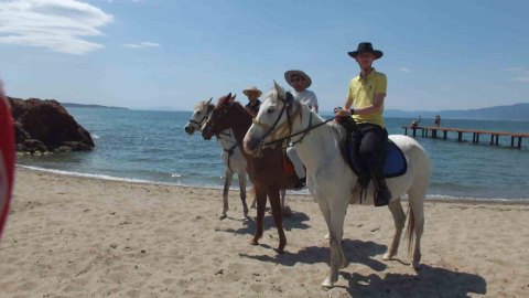 Ata sporu olan biniciliği yaşatmak istediklerini kaydeden Taner Buyraz, fırsat buldukça plaja geldiklerini söyledi.