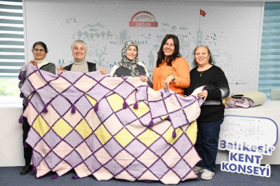 Balıkesir’de bir araya gelen 13 kadın dayanışmanın ve emeğin önemini duyurmak, farkındalık sağlamak için ilmek ilmek "Umut Battaniyesi"ni ördü