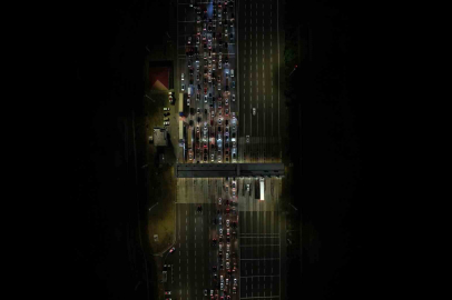 Otoyolların kesişim noktasında duran trafik havadan görüntülendi.