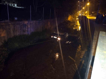 Beykoz’da sürücüsünün kontrolünden çıkan otomobil dereye uçtu