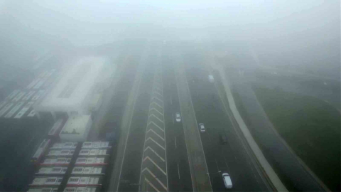 Sis nedeniyle trafikte görüş zaman zaman düştü. Öte yandan, trafikte seyir halindeki araçlar ise sis altında havadan görüntülendi.