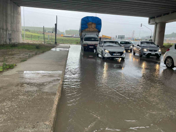 Bilecik’te aniden bastıran yağmur sonrası Yeni Hastane kavşağından biriken su sürücülere zor anlar yaşattı.