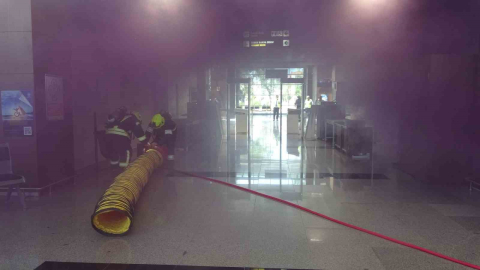 Deprem anında havalimanında bulunan yolcuları, Acil Yardım ve Afet Yönetimi Bölümü (AYAY) öğrencileri temsil etti. Depremle beraber havalimanında sirenler çaldı ve uyarılar anons edildi. Deprem sırasında çök, kapan, tutun yöntemini uygulayan temsili yolcular tehlikenin ardından havalimanını terk etmek istediler ama çıkış yollarında yangın çıktığını öğrendiler. Dumandan etkilenmemek için yere çökerek bekleyen yolcular ARFF ekiplerinin müdahalesi ardından güvenli bir şekilde alanı boşalttılar. Yolcular havalimanının ’Acil Durum Toplanma Noktası’nda toplandılar.