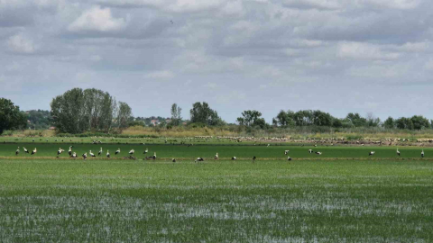 Çeltik tarlası değil leylek tarlası: Binlerce leylek tarlayı kapladı