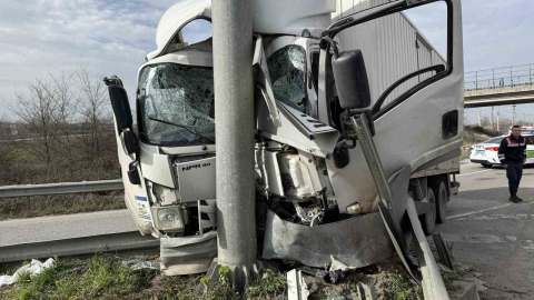 Sakarya’nın Arifiye ilçesi D-650 kara yolunda sürücüsünün direksiyon hakimiyetini kaybetmesi neticesine kontrolden çıkan kamyonet, yön tabelasına ok gibi saplandı