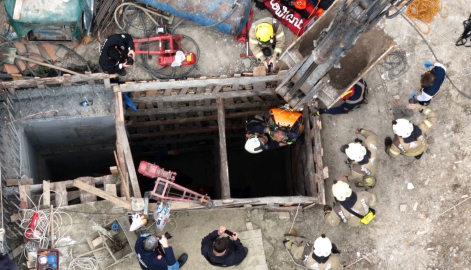 Ağır yaralanan işçi, itfaiye ekiplerinin çalışmasıyla kurtarılarak hastaneye kaldırıldı. Yaralı işçiyi kurtarma çalışması dron ile görüntülendi.