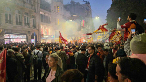 haftasında 25. şampiyonluğunu ilan eden Galatasaray’da taraftarlar maç bitiminde Taksim’e akın etti. Binlerce taraftar, meşale ve bayraklarla kutlama yaptı.