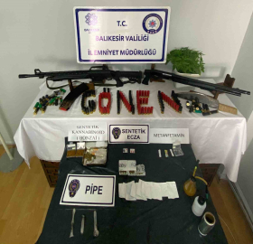 Balıkesir’in Gönen ilçesinde polis ekipleri tarafından düzenlenen operasyonda uyuşturucu madde, ruhsatsız silahlar ve çeşitli malzemeler ele geçirildi.