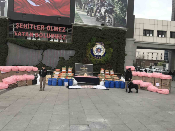 İstanbul’da 2 uyuşturucu imalathanesiyle Diyarbakır’da elebaşılığını M.Z.U.’nun yaptığı uyuşturucu çetesine yönelik düzenlenen operasyonda ele geçirilen uyuşturucu maddeler emniyette sergilendi.