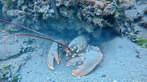 İzmit Körfezi’nde dalış yapan amatör dalgıç Levent Şişman, 2 kilogramı aşkın olduğu tahmin edilen ıstakozla karşılaştı