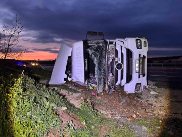 Kontrolden çıkan tır devrildi, sürücüsü yaralandı