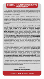 Maltepe Belediyesi, son günlerde yetkili sendika tarafından yapılan açıklamalar üzerine hem kamuoyunun doğru bilgilendirilmesi hem de çalışanların emeğine duydukları saygının altını çizmek amacıyla "Değerli Maltepe Halkına ve Kamuoyuna" başlıklı açıklama yaptı.
