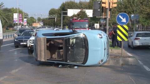 Maltepe’de seyir halindeki bir otomobil sürücüsünün kontrolünden çıkarak yan yattı