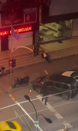 Yoldan geçen bir genç ise eline aldığı plastik dubayı fırlatarak şahsı uyandırmaya çalıştı. O anlar cep telefonu kamerasına yansıdı.