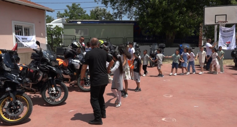 Türkiye’nin dört bir yanında binlerce öğrenciye ulaşan motosiklet topluluğu "1000 Motorcu 1000 Çocuk" projesi kapsamında Kırklareli Merkez Kırk Şehitler İlkokulunda öğrencilerle bir araya gelerek oyunlar oynadı, kırtasiye malzemeleri, oyuncaklar ve eğitim paketleri ve ayakkabı hediye etti