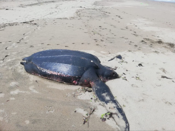 Dünyadaki en büyük sürüngenlerden birisi olarak bilinen, Pasifik, Atlas, Hint okyanusları ve Akdeniz’de görülen deri sırtlı deniz kaplumbağası, Sakarya’nın Karasu ilçesi İhsaniye Mahallesi mevkisinde sahilde ölü olarak bulundu. Geçtiğimiz senelerde ilk kez İstanbul Boğazı’nda görülen bu hayvanın boyu 3 metreye ve kilosu 900 kilograma kadar ulaşabiliyor. Sahilde vatandaşlar tarafından ölü olarak bulunan deri sırtlı deniz kaplumbağası, okyanuslarda en derine dalan ve en büyük mesafeleri kat eden "Şampiyon kaplumbağa" olarak da biliniyor.