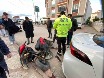 Park halindeki otomobile çarpman motosikletin sürücüsü yaralandı