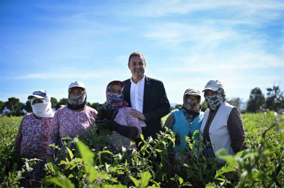 Balıkesir Büyükşehir Belediye Başkanı Ahmet Akın, tarlada patlıcan hasadı yapan kadın çiftçileri ziyaret ederek onlarla birlikte patlıcan topladı