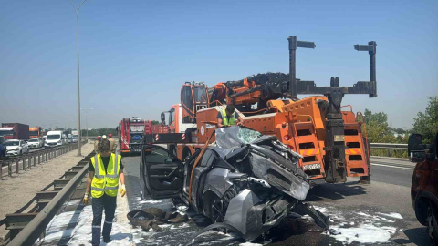 Sancaktepe TEM Otoyolu’nda tır, hafriyat kamyonu ve otomobilin karıştığı zincirleme trafik kazası meydana geldi