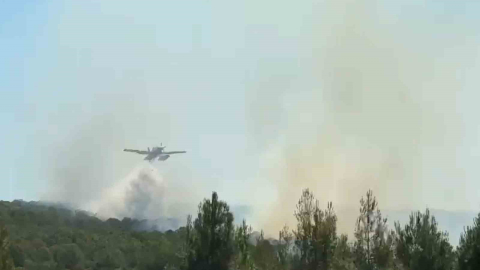 Tekirdağ’ın Şarköy ilçesinde ormanlık alanda çıkan yangına karadan ve havadan müdahale ediliyor.