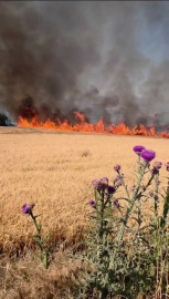 Balıkesir’in Susurluk ile Bandırma ilçeleri arasındaki kara yolunda yol kenarında bulunan bir buğday tarlasında henüz bilinmeyen bir nedenle yangın çıktı.