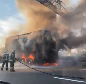 TEM Otoyolu’nun Kocaeli geçişinde talaş yüklü kamyon alev aldı