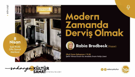 Sakarya Büyükşehir Belediyesi Nisan Kültür Takvimi birbirinden değerli konuklar ile sanatseverleri buluşturmaya devam ediyor. Programlar çerçevesinde, fikirleri ve hayat hikayesiyle hem Türkiye’nin hem de dünyanın tanıdığı yazar Rabia Brodbeck Sakarya’da sevenleriyle buluşacak. Modern hayatın hızına karşı bir duruş geliştirmeyi ve içe dönüşün imkanlarını yeniden düşünmeyi amaçlayan "Modern Zamanda Derviş Olmak" söyleşisi Ofis Sanat Merkezi’nde (OSM) gerçekleştirilecek. Samimi bir sohbet eşliğinde gerçekleşecek program, 8 Nisan Salı günü saat 19.00’da başlayacak. Büyükşehir, tüm sanatseverleri etkinliğe davet etti.