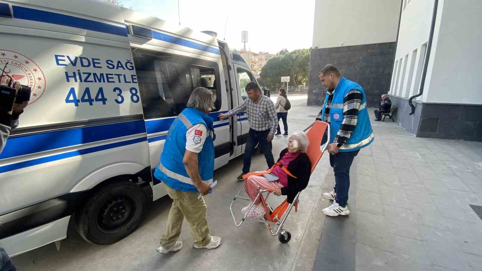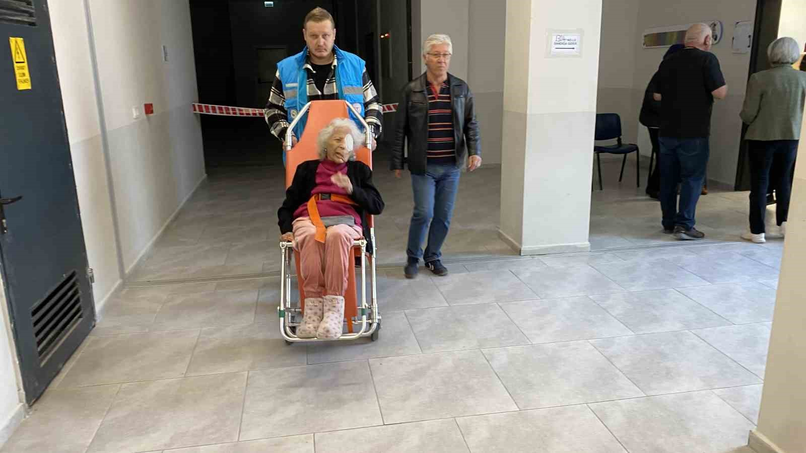 Çanakkale’de beyin kanaması geçiren hasta taşıma sedyeyle gelerek oy kullandı
