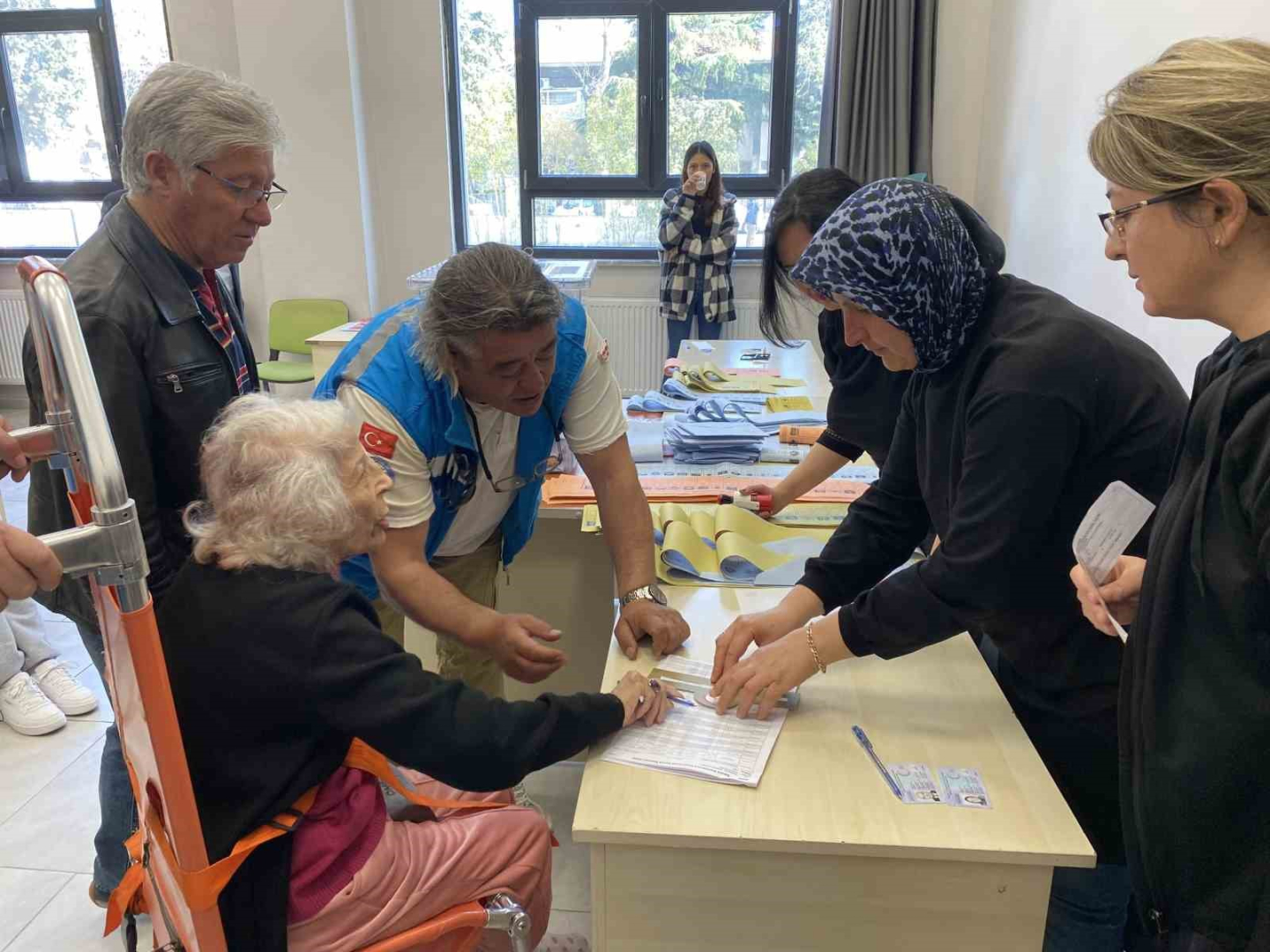 Kısa bir süre önce beyin kanaması geçiren Muhterem Sargın, İl Sağlık Müdürlüğü Evde Sağlık Hizmetleri Koordinasyon Merkezi ekipleri tarafından evinden ambulansla alınarak oy kullanacağı Gazi Orta Okulu’na getirildi. Sargın, sağlık ekiplerinin yardımıyla 1304 nolu sandıkta oyunu kullandı.