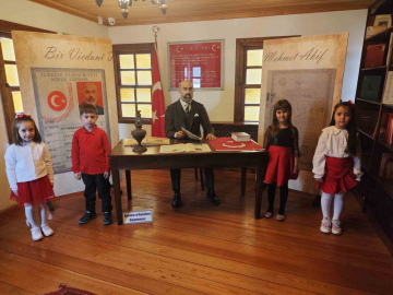 "Bir Yıldız Bir Hilal İlelebet İstiklal" teması ile İstiklal Marşının 10 kıtasını ezberleyen öğrenciler Mehmet Akif Ersoy’un evinde buluşarak milli marşı ezbere okudu.