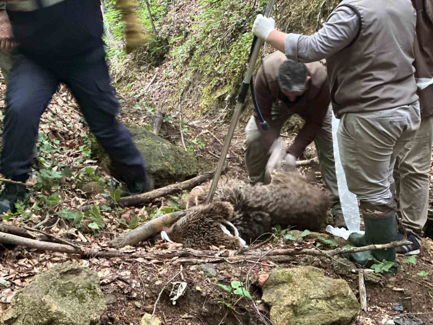 Edinilen bilgiye göre, dün gece Uludağ yolunda araçların önüne çıkan yaralı bir ayı olduğu ihbarının 112 Acil Çağrı Merkezi’ne düşmesinin ardından harekete geçen Uludağ Yiğitali Jandarma Karakoluna bağlı Asayiş timleri, yaptıkları incelemede yaralı bir ayının olduğunu ve ayının ormanlık alana doğru sürünerek ilerlediğini tespit etti. Bunun üzerine Jandarma Çevre Koruma Timi ve Doğa Koruma ve Milli Parklar (DKMP) ekiplerine haber verildi. DKMP Bursa Şube Müdürlüğü ve jandarma timlerinden oluşan aralarında 3 veteriner hekimin de bulunduğu 20 kişilik kurtarma ekibi gece boyu ayıya ulaşmaya çalıştı.