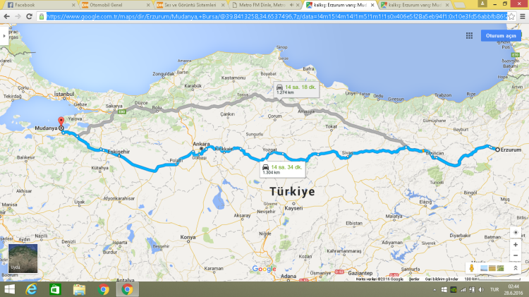 Özel araç ile Bursa’dan Erzurum’a yapılacak yolculuk: